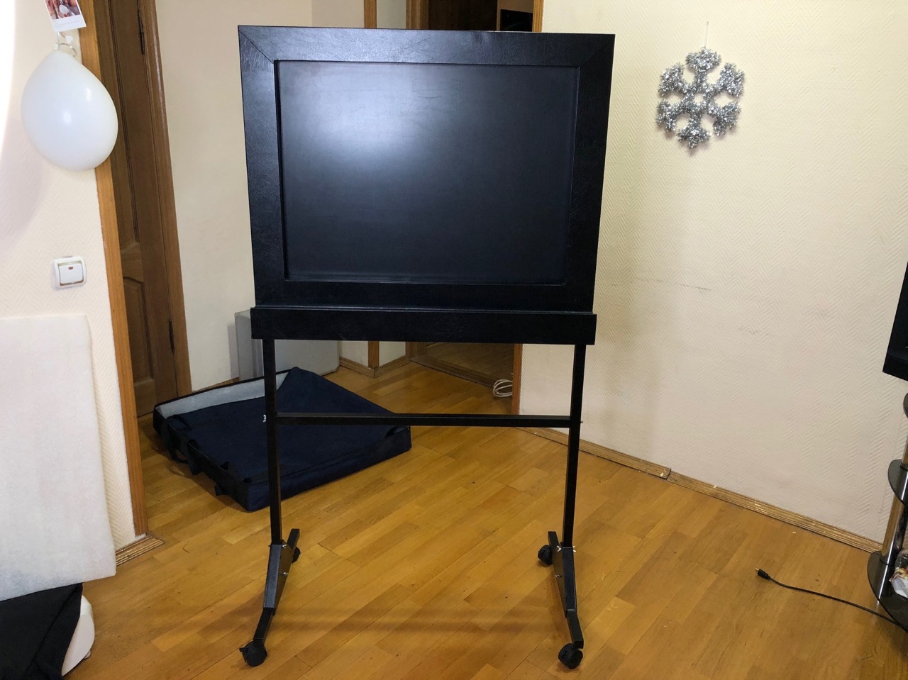 Доска умеет писать на 3 скоростях (медленно, средне, быстро). Имеет функцию режима ожидания с последовательным написанием необходимых значений. Функция заранее подготовленных рисунков/значений (шаблонов), с возможностью выбора для быстрого написания. В комплекте аккумуляторы, зарядное устройство, инструкция, приложение на андроид, упаковка мела на год вперёд. Также доска имеет гарантию от изготовителя с возможностью отправки ему доски если обнаружится какой-либо брак в деталях или захочется добавить функционала. Доска в отличном состоянии, с чистой пишущей поверхностью. Реальные фото: ![]() ![]() Габариты: Размеры в чехле: 88 см на 73 см толщина 12 см Доска 86 см на 72 см, толщина вверху 4 см и внизу 8 см Пишущая поверхность: 52 см на 72 см В собранном виде высота 154 см. Состояние отличное! Отправка из Санкт-Петербурга за счет Покупателя. Условия доставкиВариант 1: Транспортная компания CDEK (СДЭК) - До Склада (Пункта самовывоза)![]() Вариант 2: Транспортная компания CDEK (СДЭК) - До Двери (до квартиры)